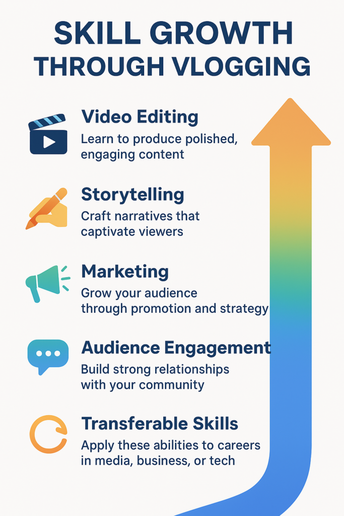 Vlogging helps you develop a diverse set of skills—from video editing and storytelling to marketing and audience engagement. These skills are transferable and can enhance your career in various industries.